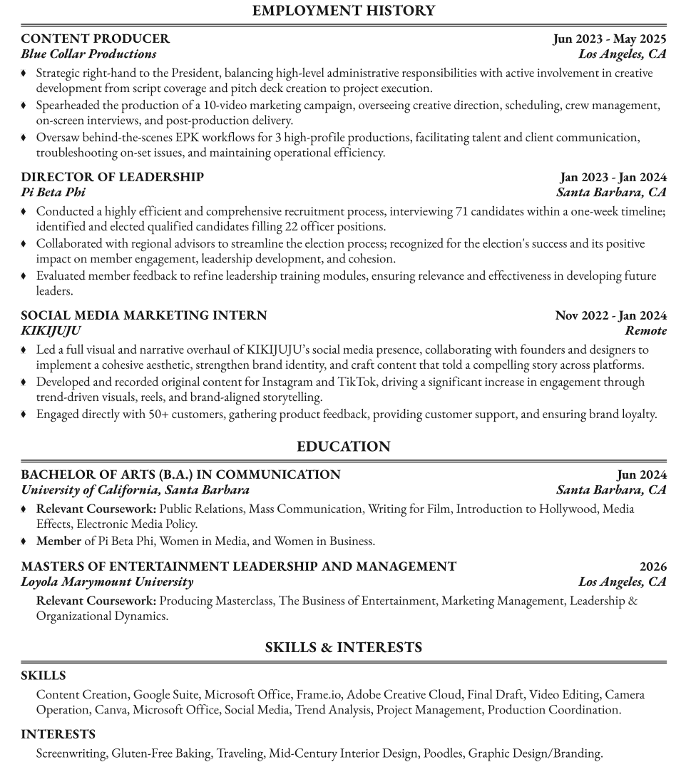 Whether I’m producing a film, crafting a marketing campaign, building an app, designing on Canva, or coordinating a set, I thrive on the energy of bringing ideas to life. From long nights of brainstorming to fast-paced shoots and self-taught creative challenges, I’ve poured myself into every project with heart, hustle, and vision. I’m endlessly inspired by the power of storytelling to move people, shift perspectives, and create connections. Creativity— no matter what form— is what I live for.